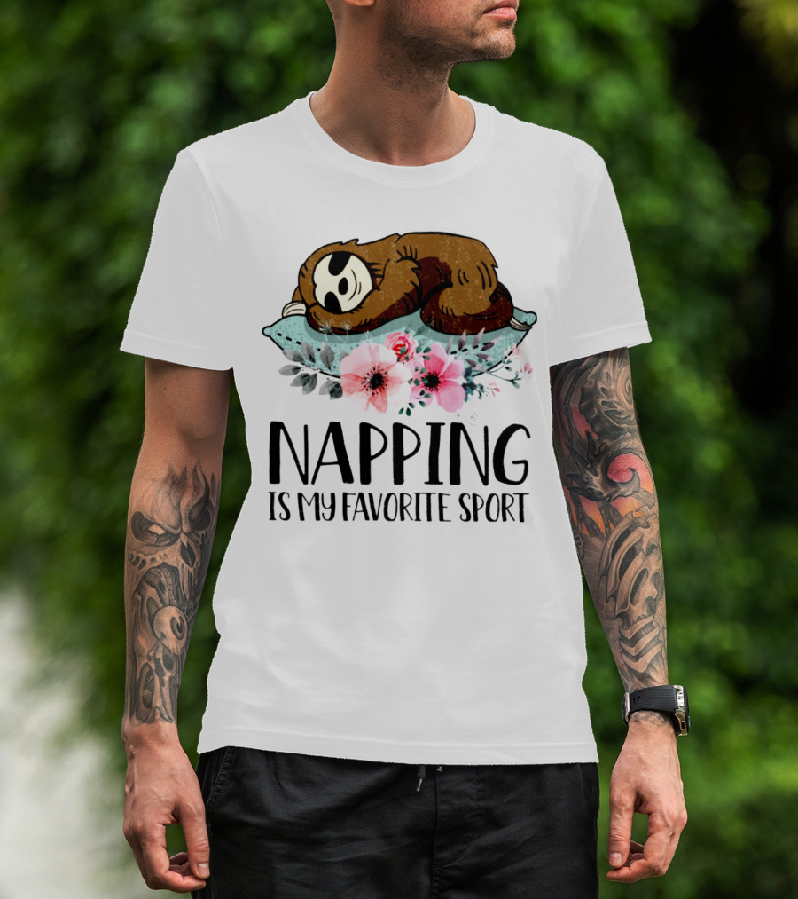 Sloth Napping Is My Favorite Sport With Floral Accents T-Shirt