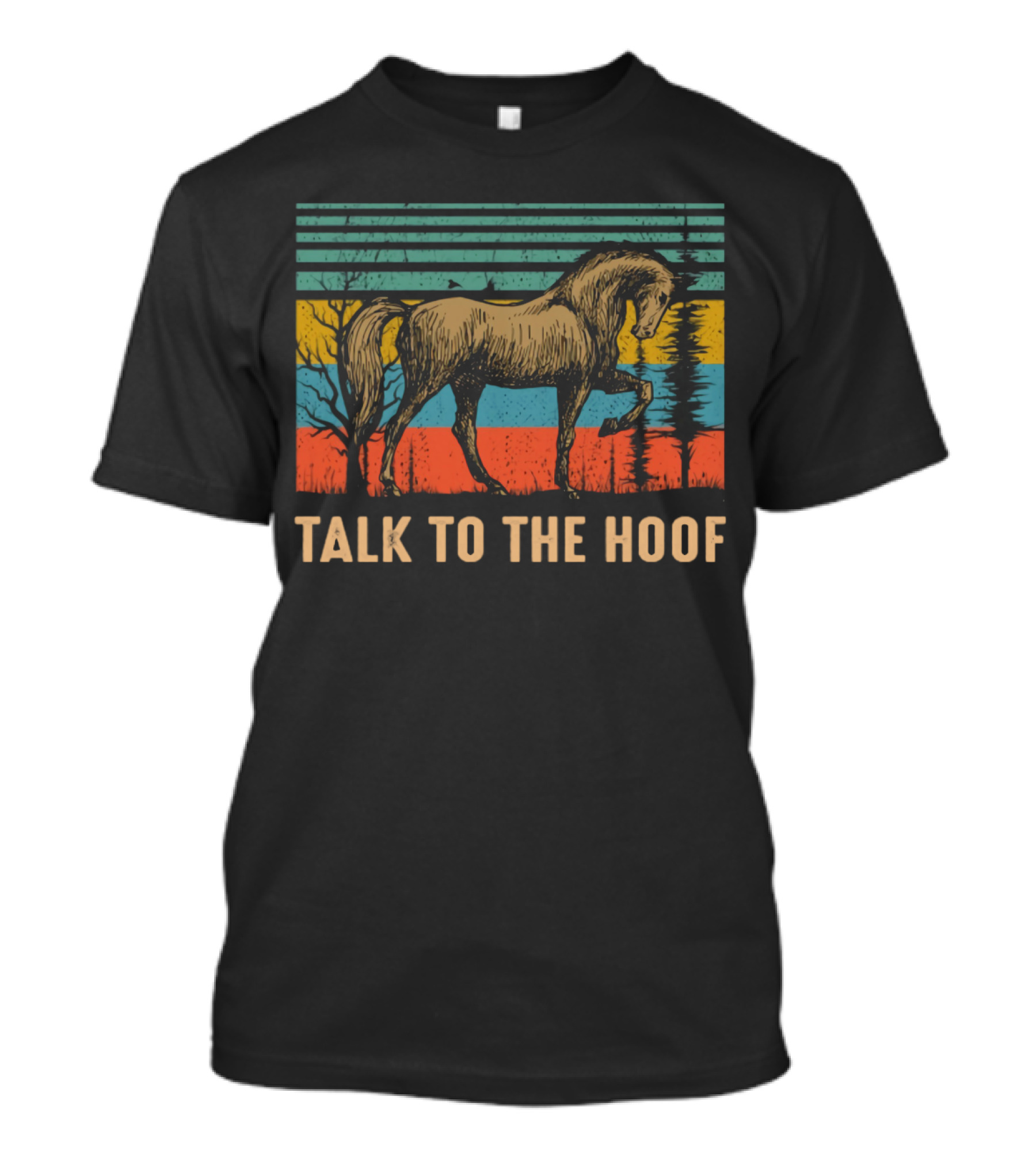 The Vintage Horse Talk To The Hoof Retro T-shirt is designed for everyday wear and a consistent fit. Fabric is pre-shrunk ring-spun cotton with durable stitching. See the size chart below for exact measurements.