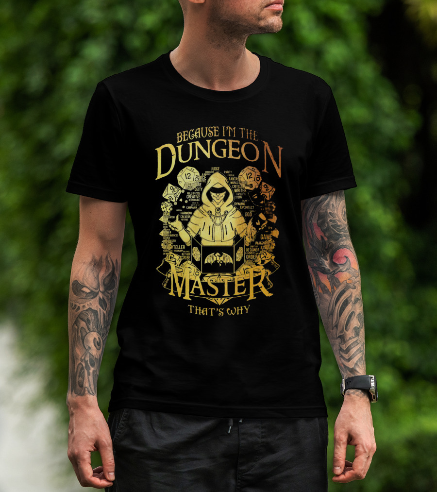 The Because I'm the Dungeon Master That's Why T-shirt is designed for everyday wear and a consistent fit. Fabric is pre-shrunk ring-spun cotton with durable stitching. See the size chart below for exact measurements.