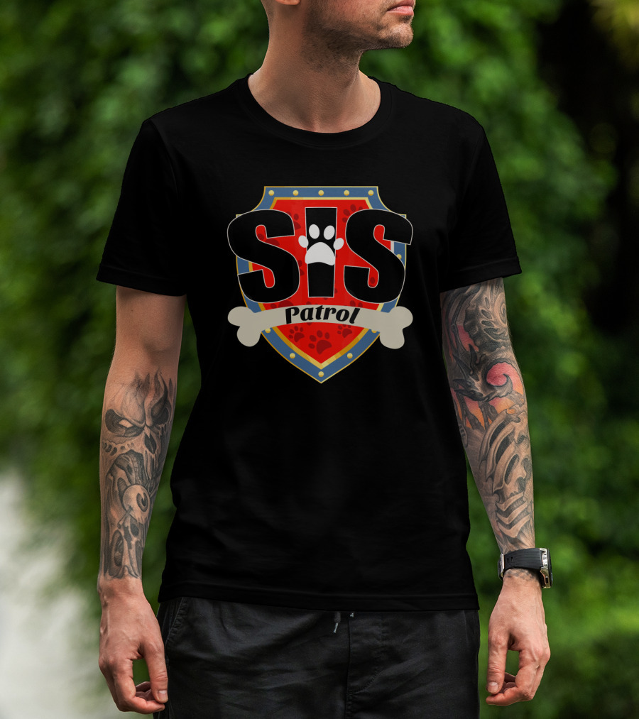 Sis Patrol Paw Print Shield Funny Dog Sis T-Shirt