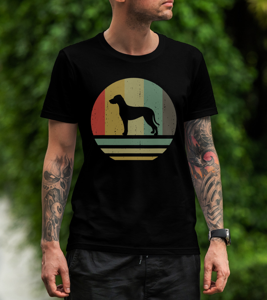 The Vintage Retro Catahoula Leopard Dog Silhouette Stripes T-shirt is designed for everyday wear and a consistent fit. Fabric is pre-shrunk ring-spun cotton with durable stitching. See the size chart below for exact measurements.