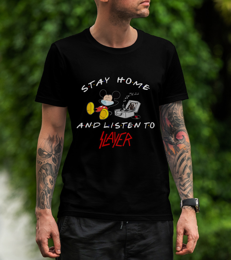 Stay Home And Listen To Slayer Mickey Masked Record Player T-Shirt