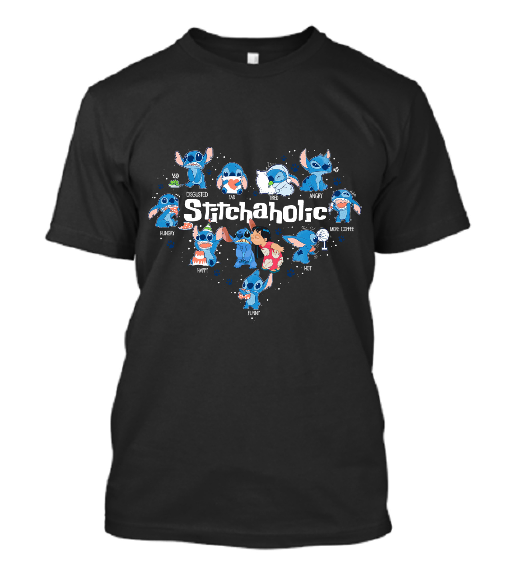 Stitchaholic Cute In Heart Sad Disgusted Tired Angry Hungry Happy Funny Hot More Coffee T-Shirt