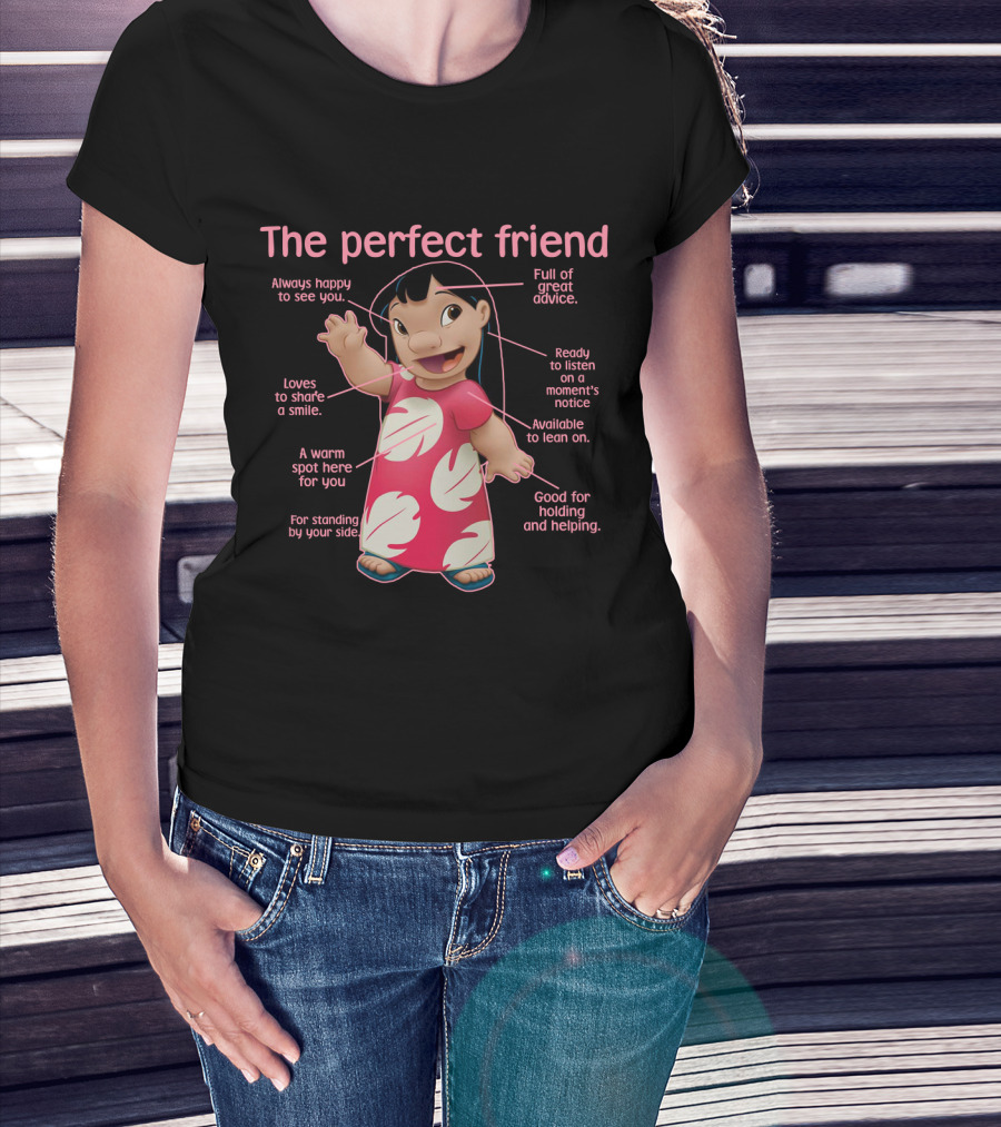 The The Perfect Friend Always Happy Full of Great Advice Ready to Listen A Warm Spot For You Good for Holding and Helping T-shirt is designed for everyday wear and a consistent fit. Fabric is pre-shrunk ring-spun cotton with durable stitching. See the size chart below for exact measurements.