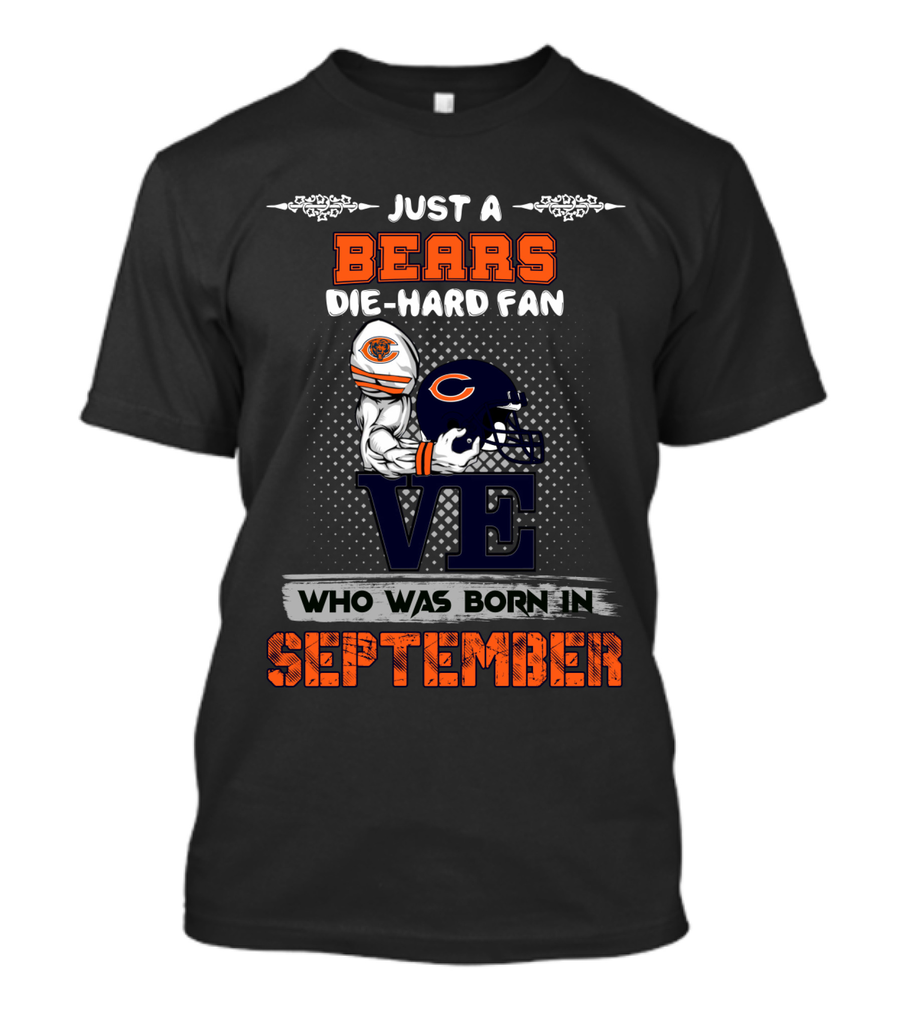 The Just a Bears Die-Hard Fan Born in September T-shirt is designed for everyday wear and a consistent fit. Fabric is pre-shrunk ring-spun cotton with durable stitching. See the size chart below for exact measurements.