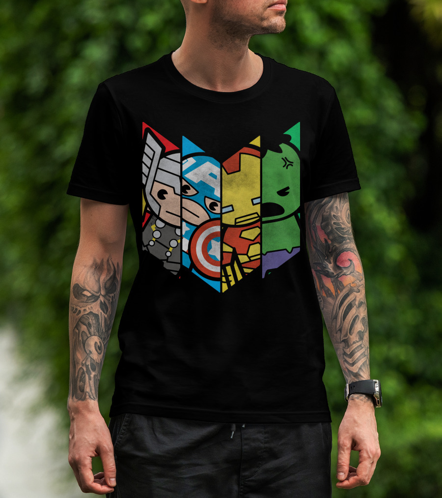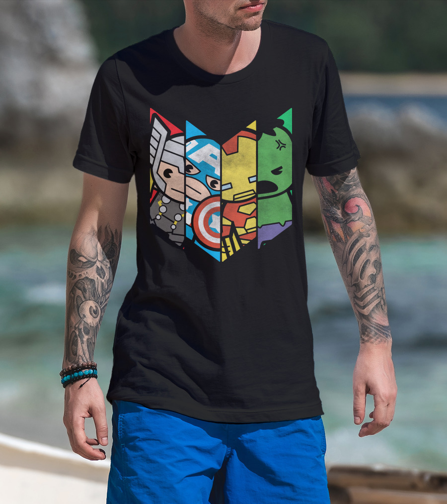 Marvel Avengers Cartoon Thor Captain America Iron Man Hulk Shield T-Shirt