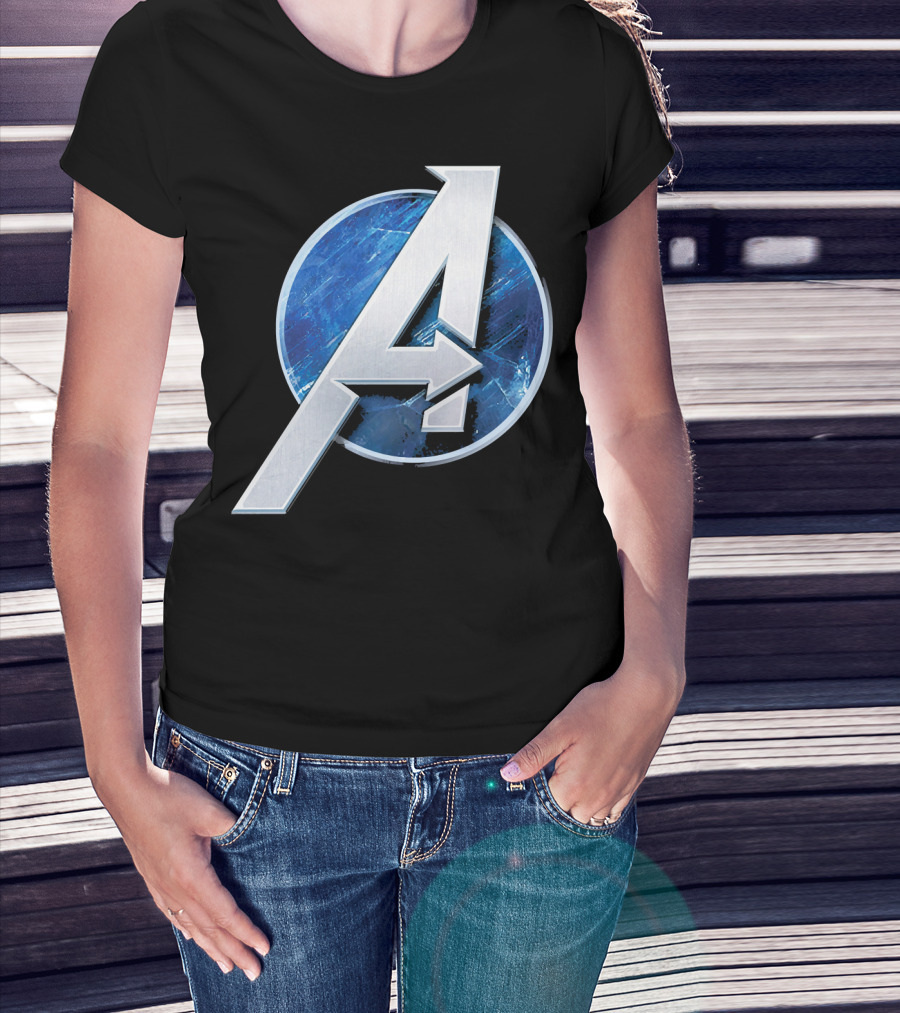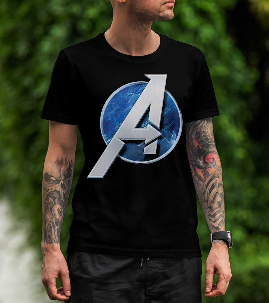 Marvel Avengers Blue Circle Icon Silver A T-Shirt