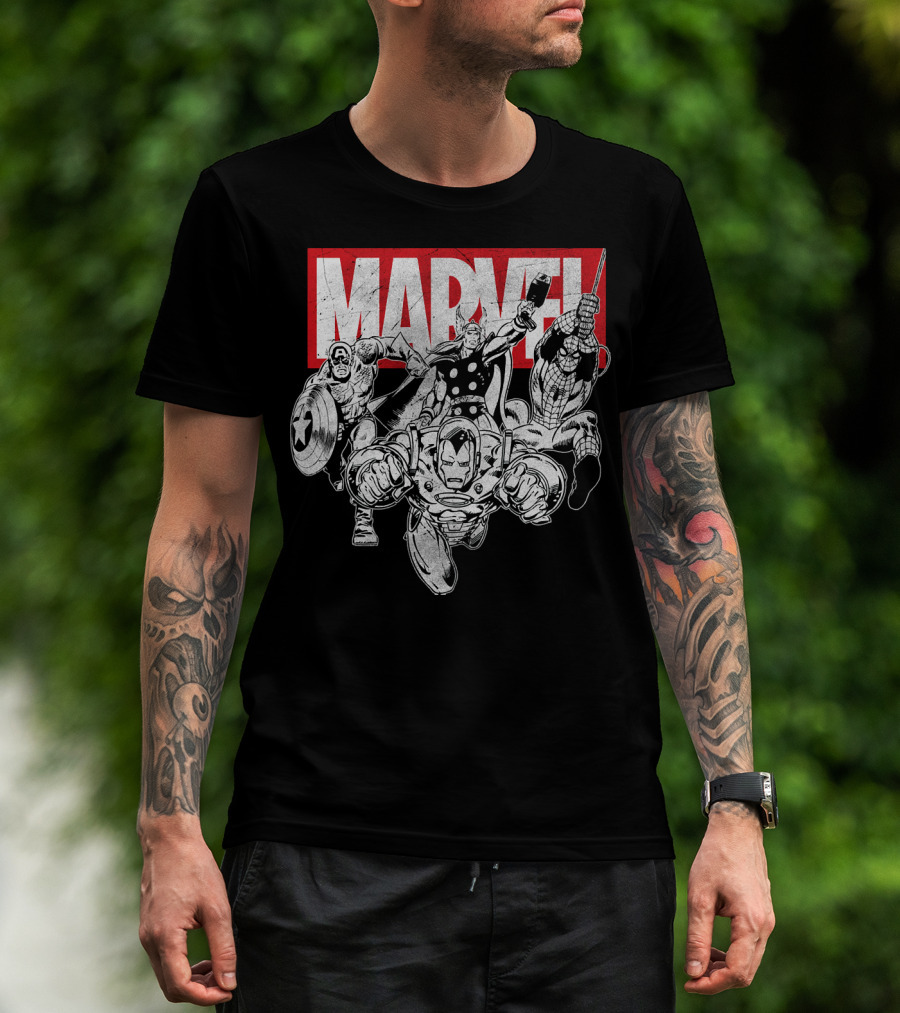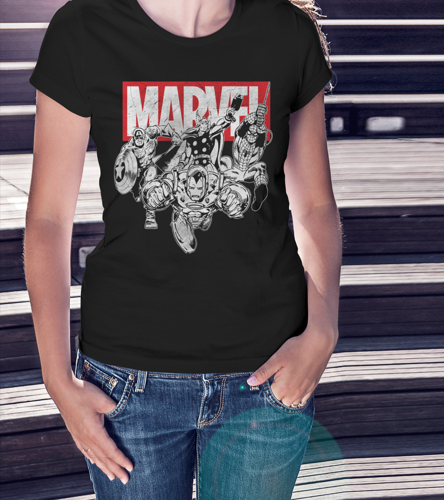 Marvel Avengers Captain America Thor Spider-Man Iron Man Grayscale T-Shirt