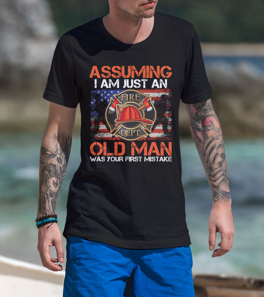 Assuming I Am Just An Old Man Was Your First Mistake Fire Dept American Flag T-Shirt