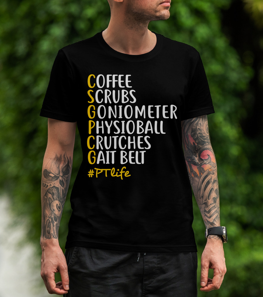 The Coffee Scrubs Goniometer Physioball Crutches Gait Belt #PTlife T-shirt is designed for everyday wear and a consistent fit. Fabric is pre-shrunk ring-spun cotton with durable stitching. See the size chart below for exact measurements.