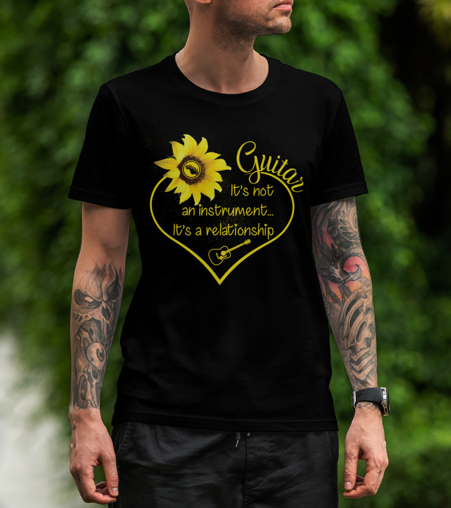 Guitar It's Not An Instrument It's A Relationship Sunflower Heart Guitar Lover T-Shirt