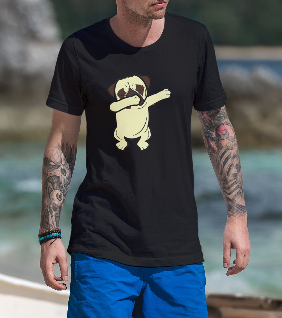 The Dabbing Pug Funny Dab Dog Meme T-shirt is designed for everyday wear and a consistent fit. Fabric is pre-shrunk ring-spun cotton with durable stitching. See the size chart below for exact measurements.
