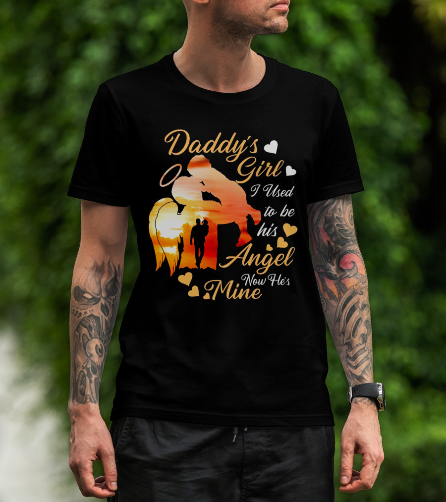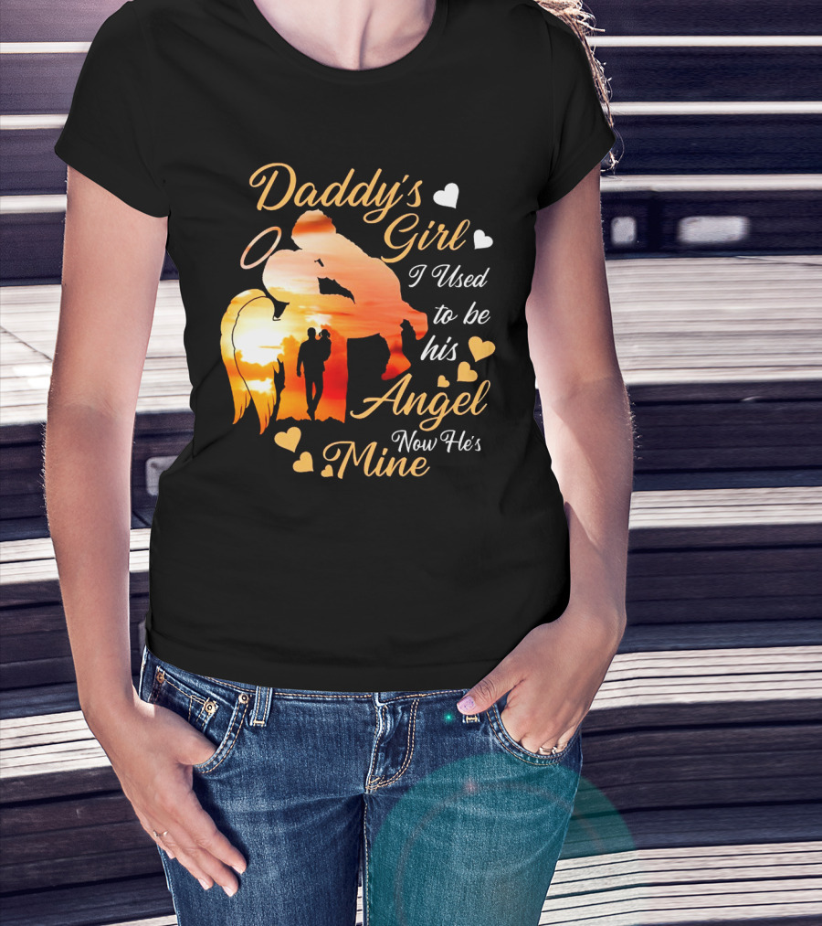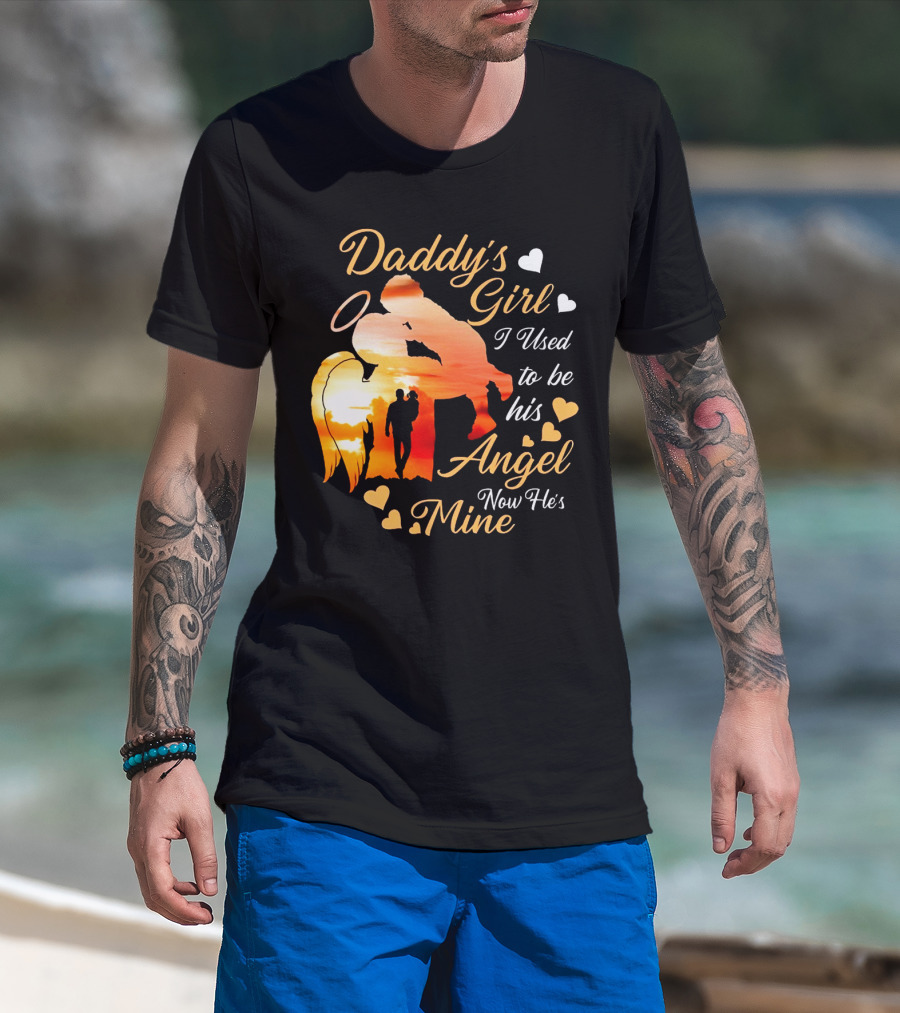 Daddy's Girl I Used To Be His Angel Now He's Mine Hearts Sunset T-Shirt