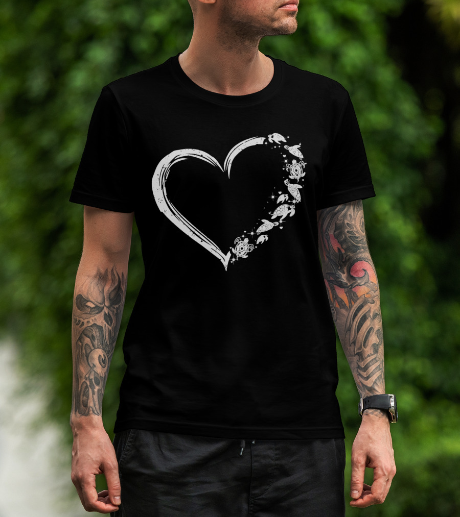 Turtle Heart Sketch Heart Shape With Sea Turtles And Stars T-Shirt