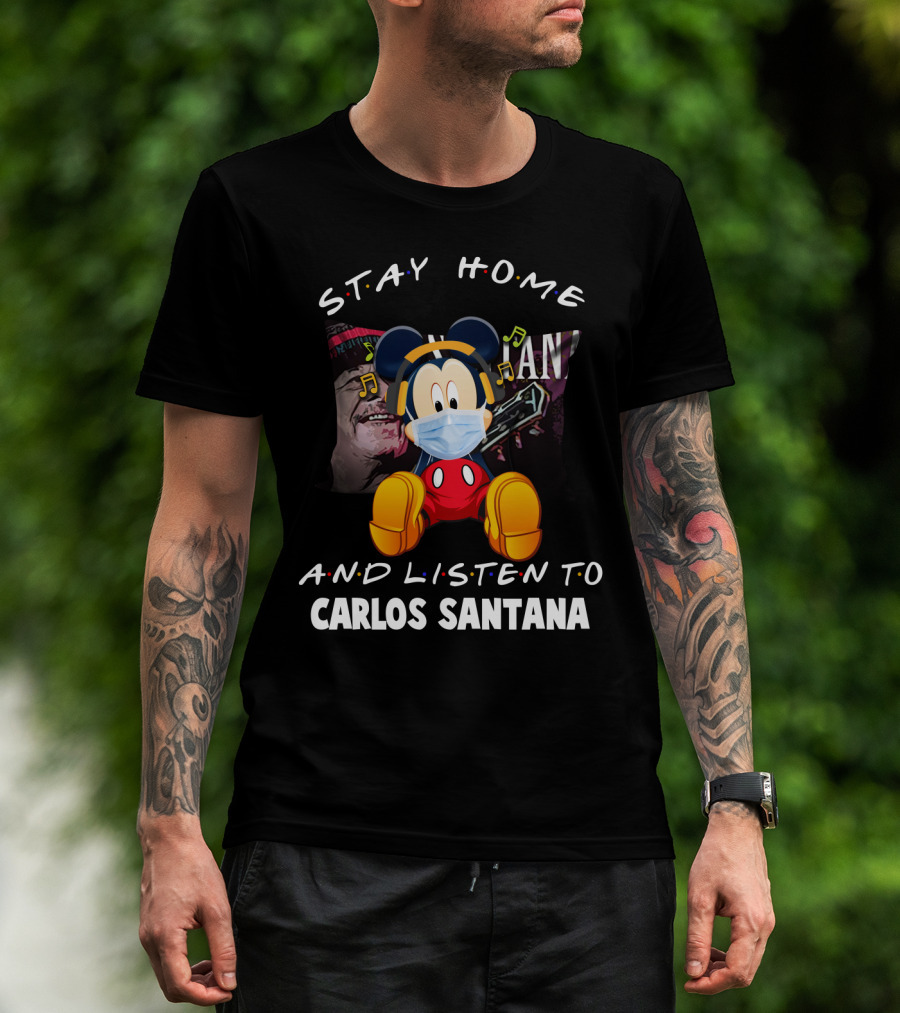 Stay Home And Listen To Carlos Santana Mickey Mouse Wearing Mask T-Shirt