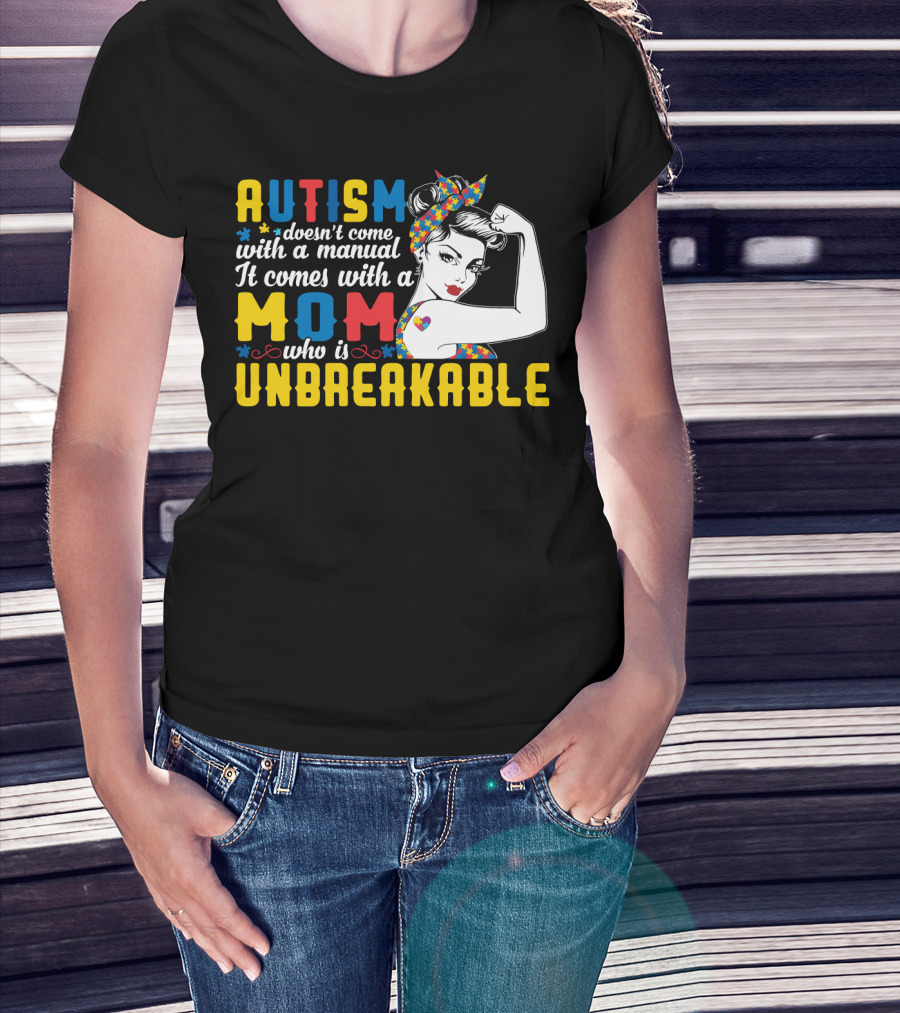 Autism Doesn't Come With A Manual It Comes With A Mom Who Is Unbreakable T-Shirt