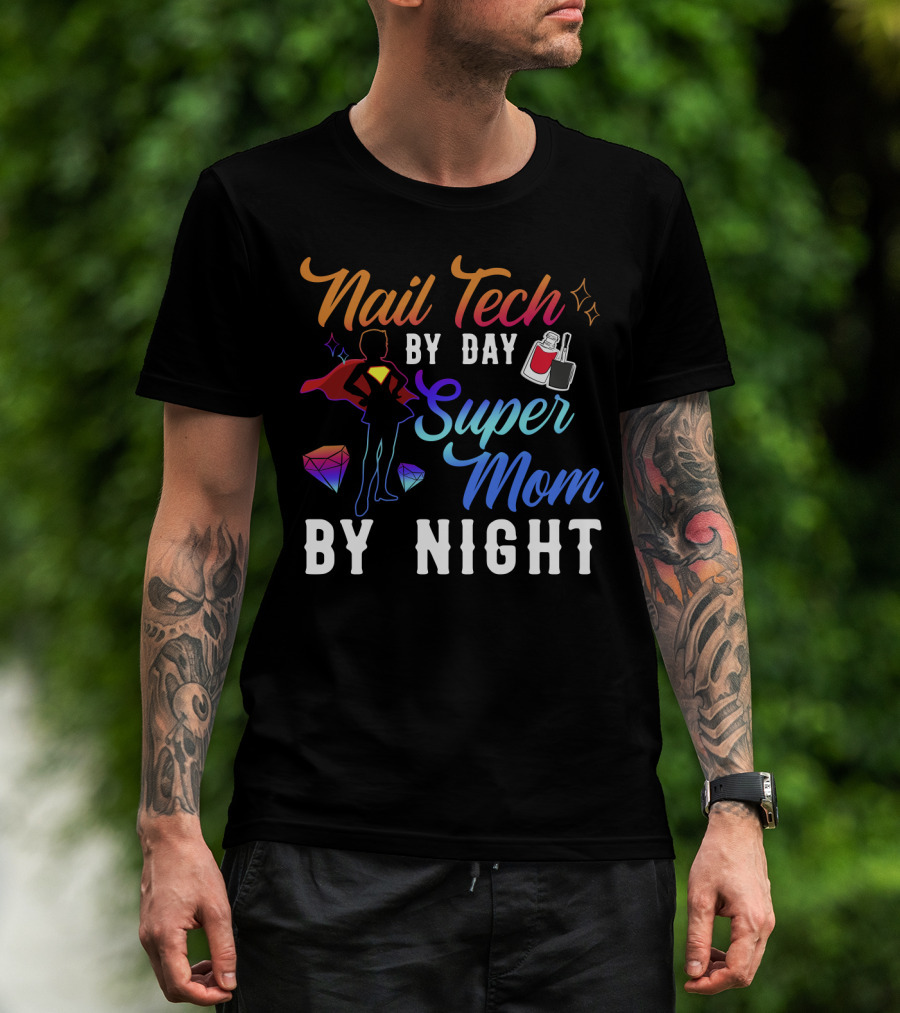 Nail Tech By Day Super Mom By Night Hero Silhouette Gems Nail Polish T-Shirt