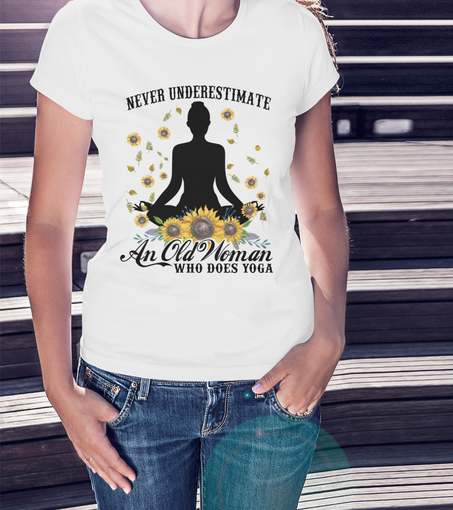 Never Underestimate An Old Woman Who Does Yoga Surrounded By Sunflowers T-Shirt