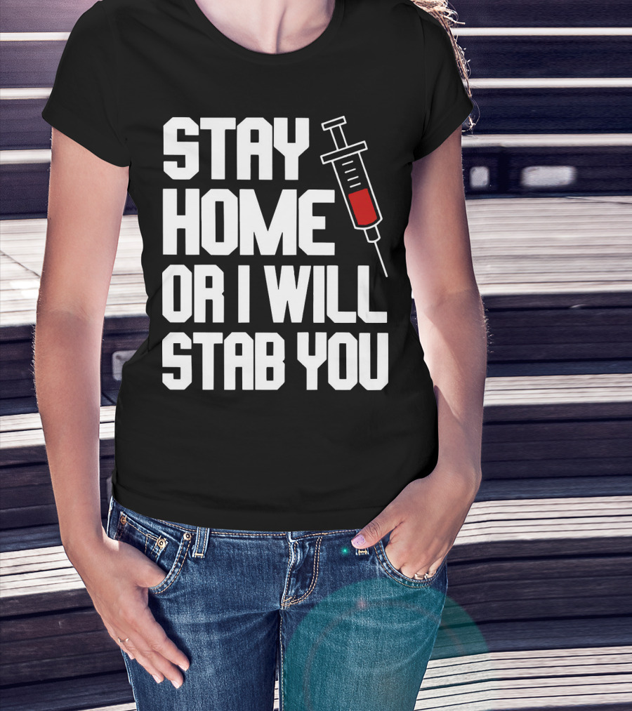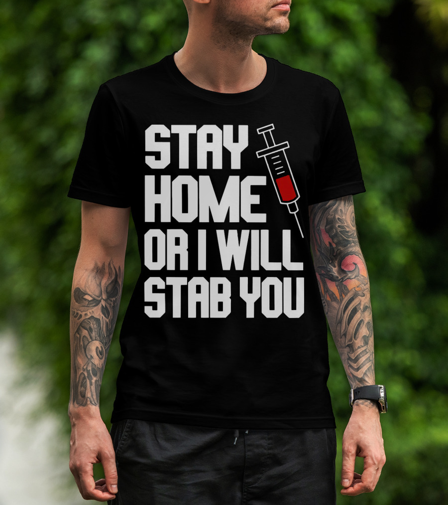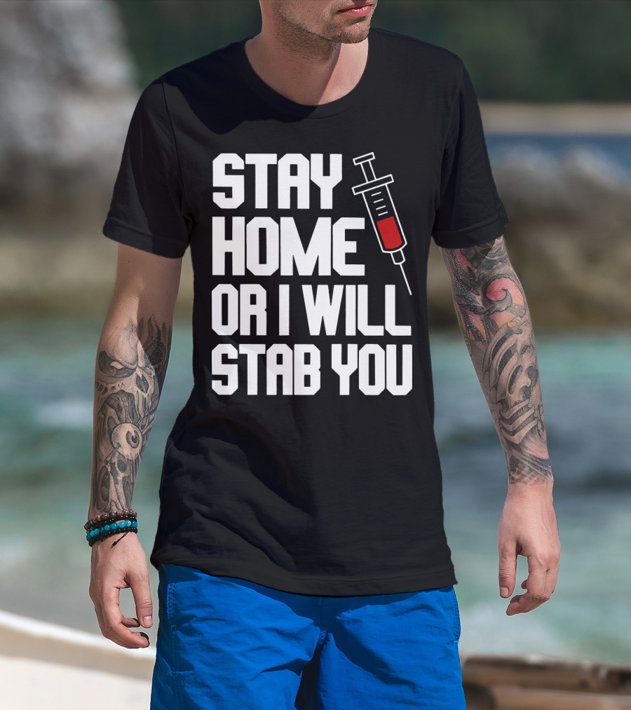 Stay Home Or I Will Stab You Syringe Warning T-Shirt