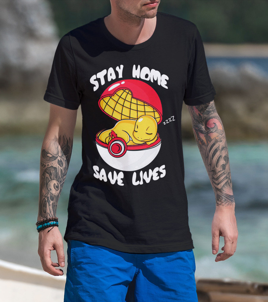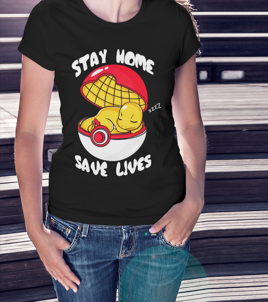Stay Home Save Lives Charmander Pokemon Ladies Pokeball Zzzz T-Shirt