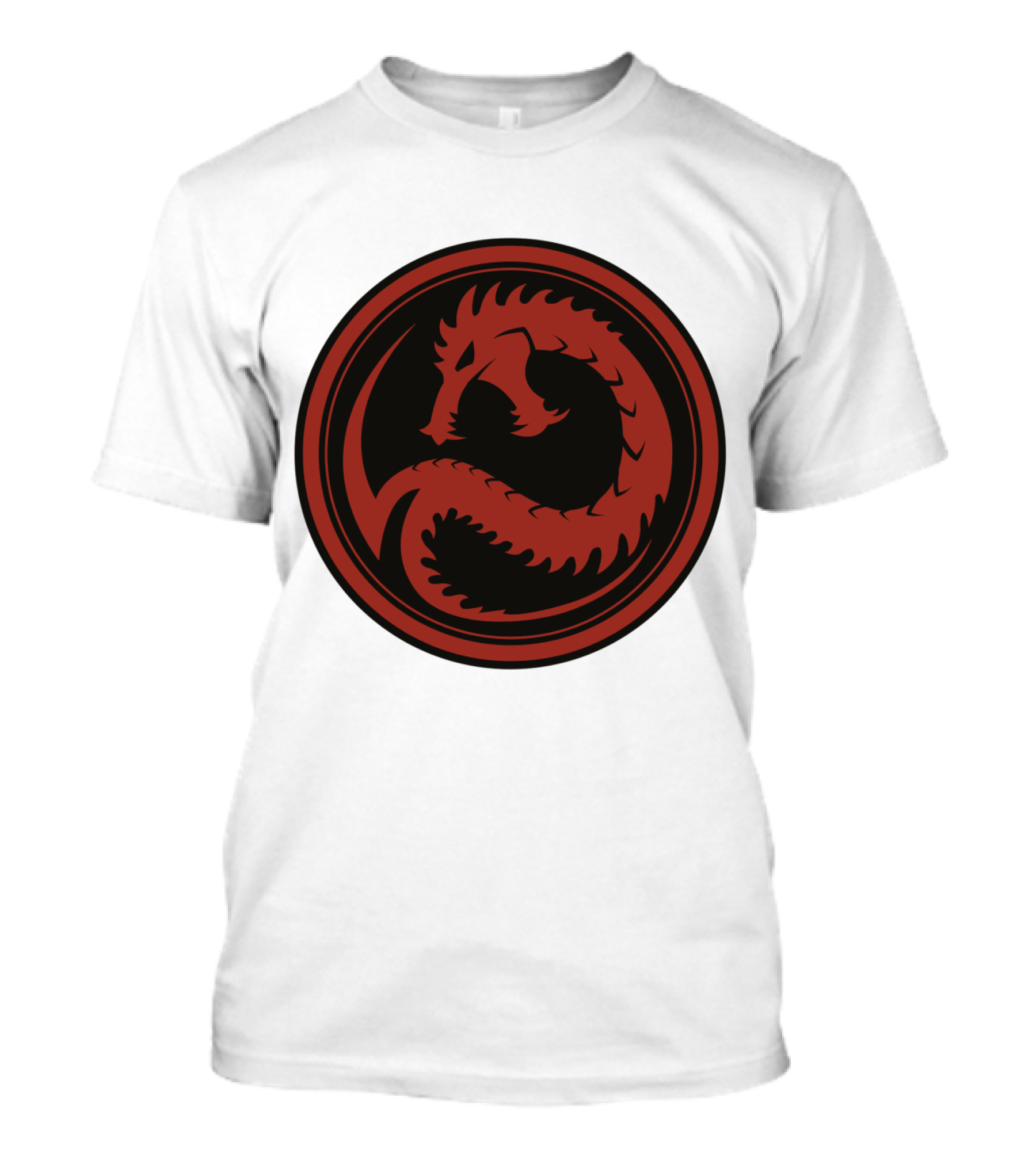 The House Kurita Dragon Emblem Battletech T-shirt is designed for everyday wear and a consistent fit. Fabric is pre-shrunk ring-spun cotton with durable stitching. See the size chart below for exact measurements.