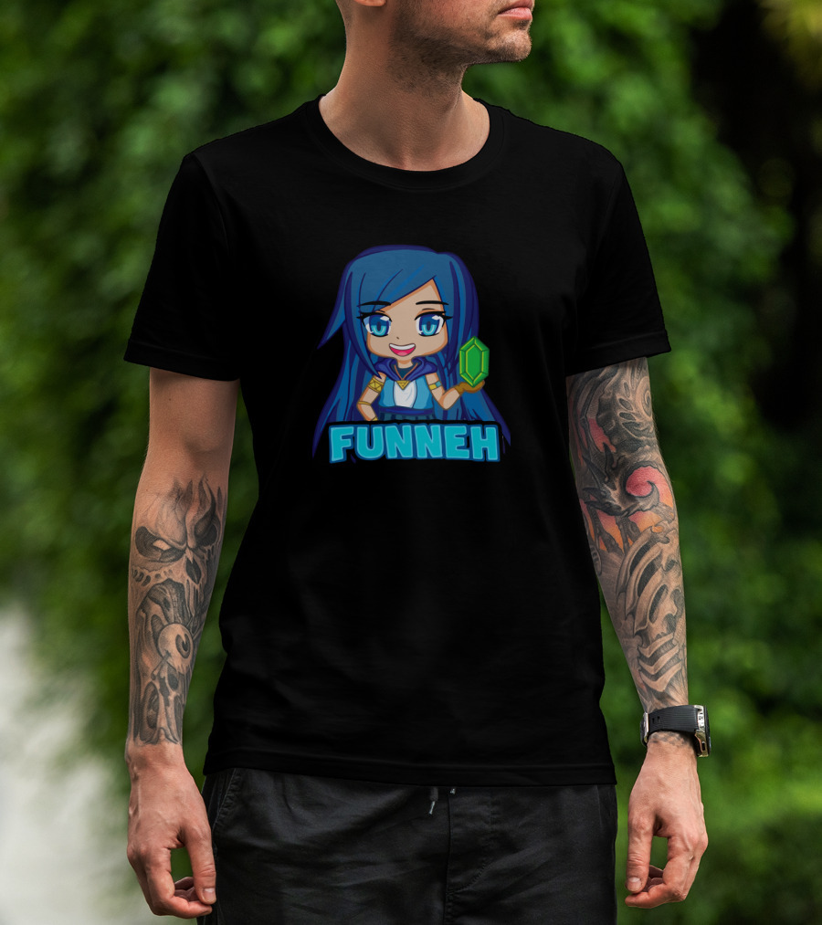 The Funneh ItsFunneh Character Holding Emerald Gem T-shirt is designed for everyday wear and a consistent fit. Fabric is pre-shrunk ring-spun cotton with durable stitching. See the size chart below for exact measurements.