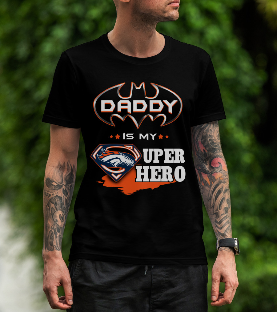 DADDY IS MY SUPER HERO BRONCOS BATMAN SUPERMAN T-Shirt