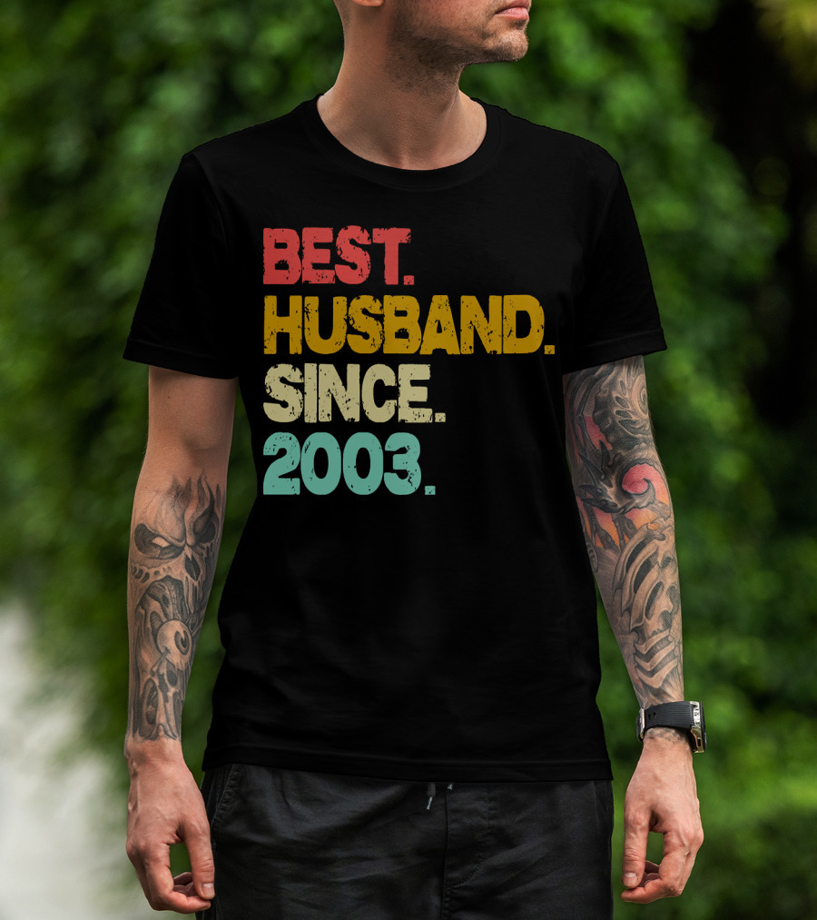 The Best Husband Since 2003 Vintage T-shirt is designed for everyday wear and a consistent fit. Fabric is pre-shrunk ring-spun cotton with durable stitching. See the size chart below for exact measurements.