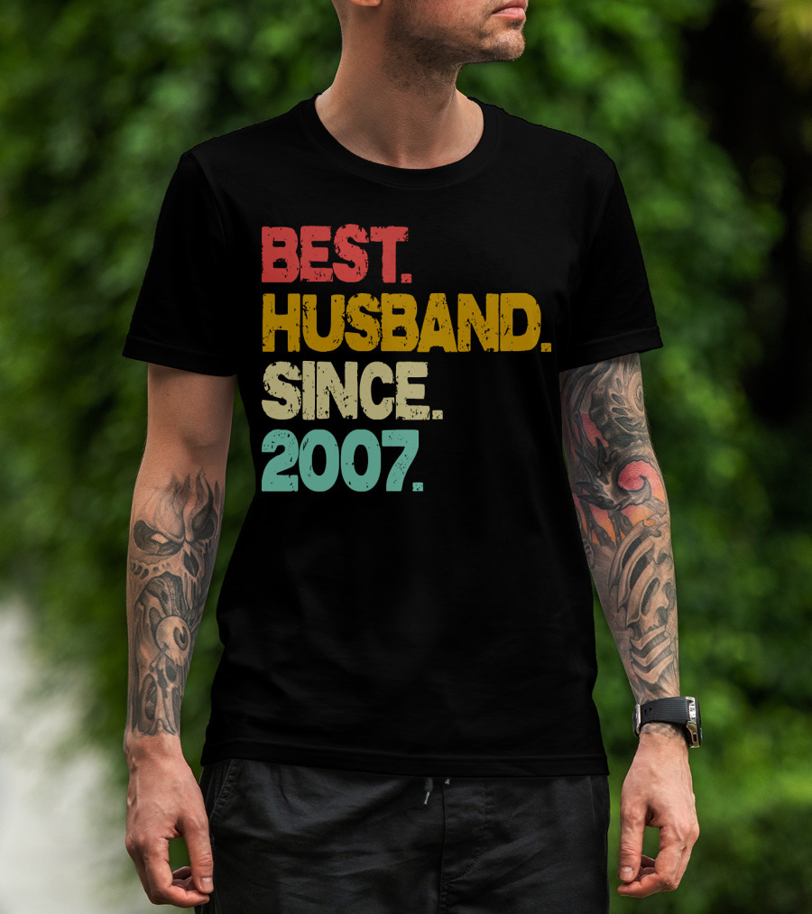 The Best Husband Since 2007 T-shirt is designed for everyday wear and a consistent fit. Fabric is pre-shrunk ring-spun cotton with durable stitching. See the size chart below for exact measurements.