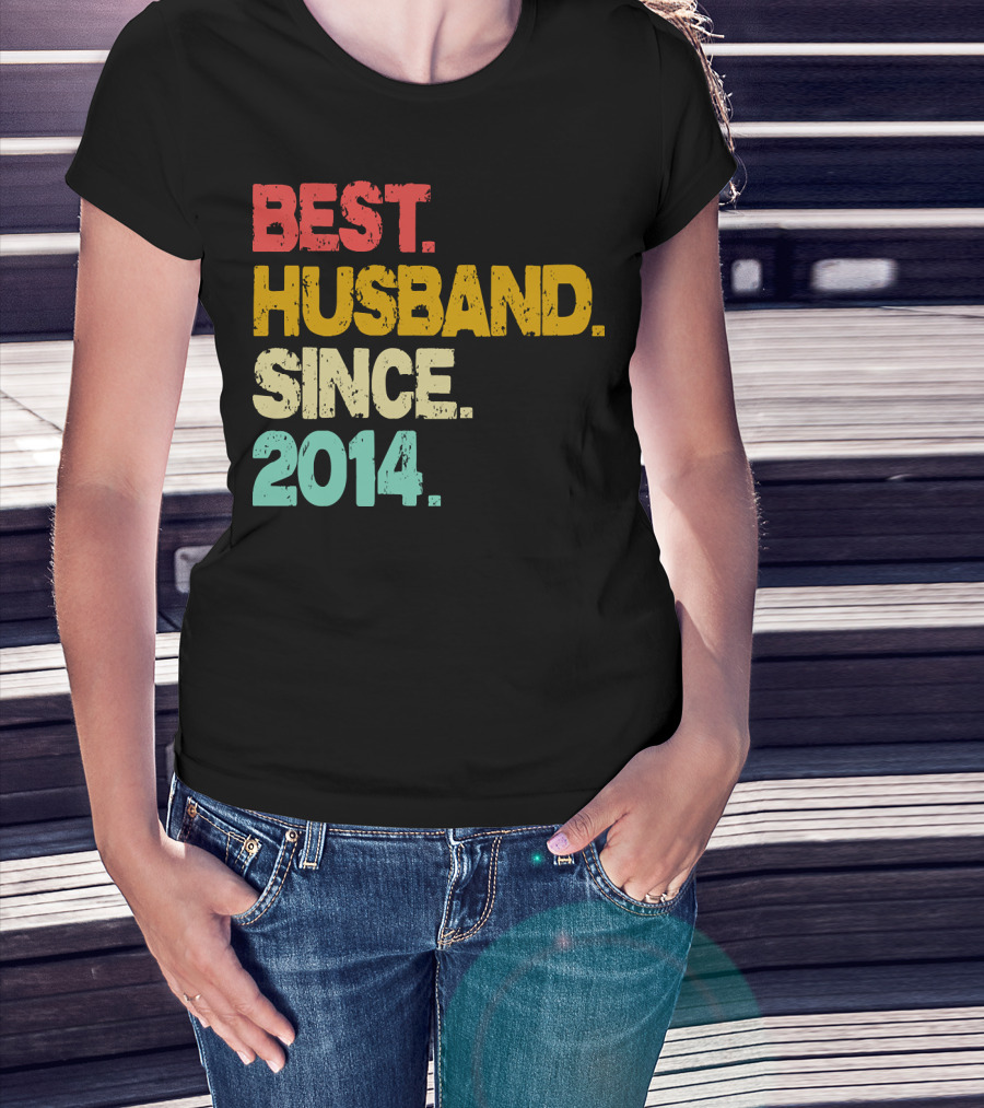 The Best Husband Since 2014 T-shirt is designed for everyday wear and a consistent fit. Fabric is pre-shrunk ring-spun cotton with durable stitching. See the size chart below for exact measurements.