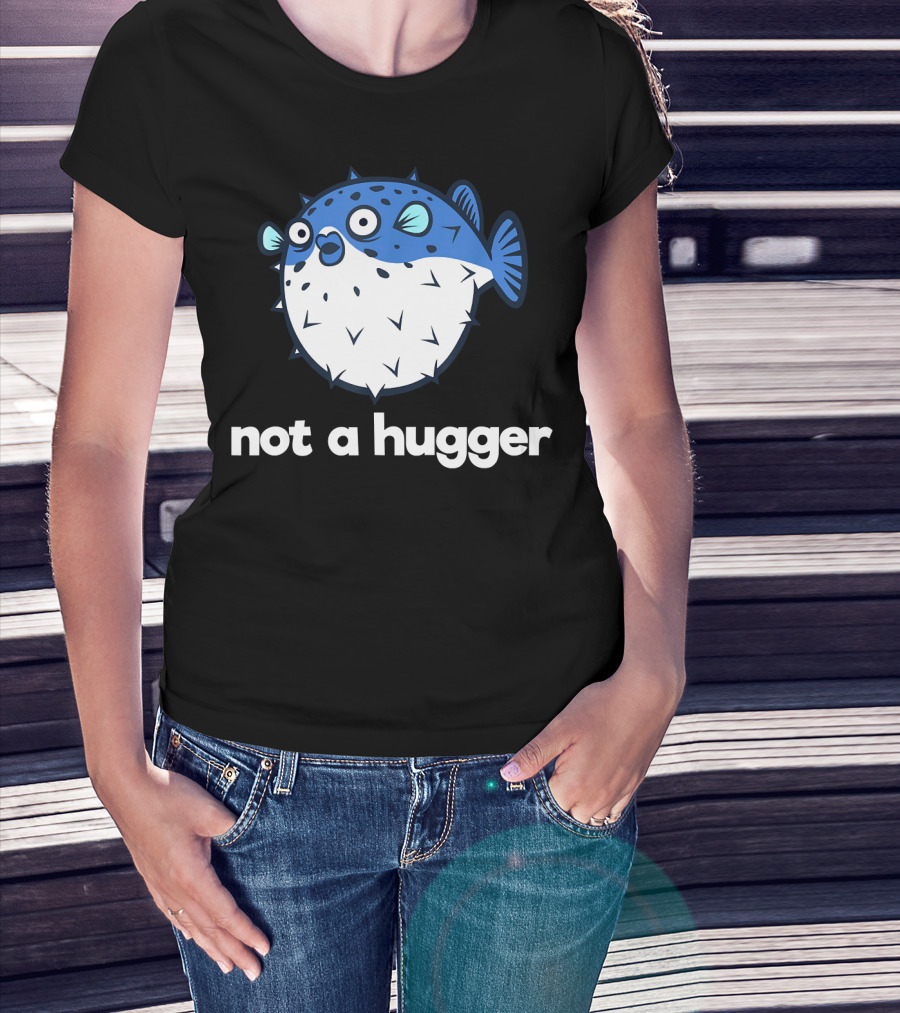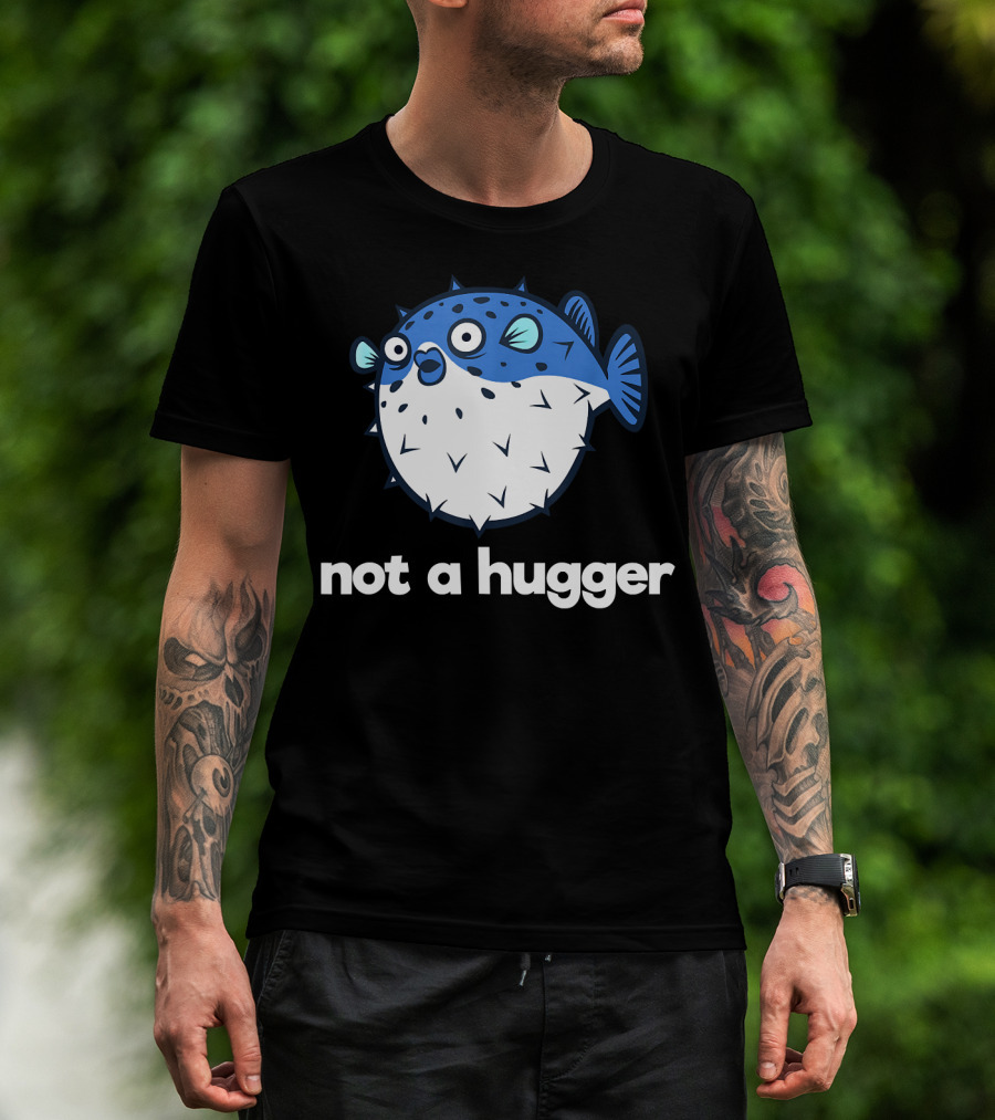 Not A Hugger Funny Pufferfish Cartoon Blue Spiky Fish T-Shirt