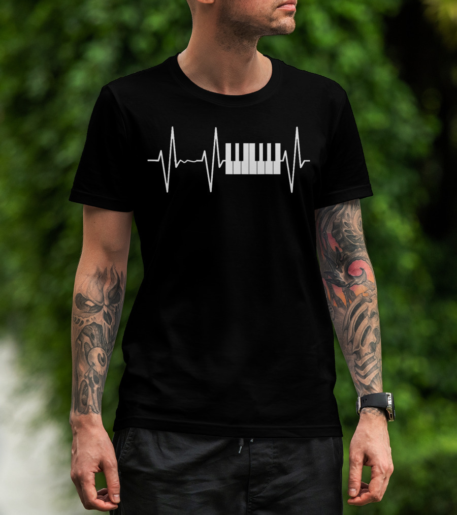 Piano Keyboard Heartbeat Vintage Music T-Shirt