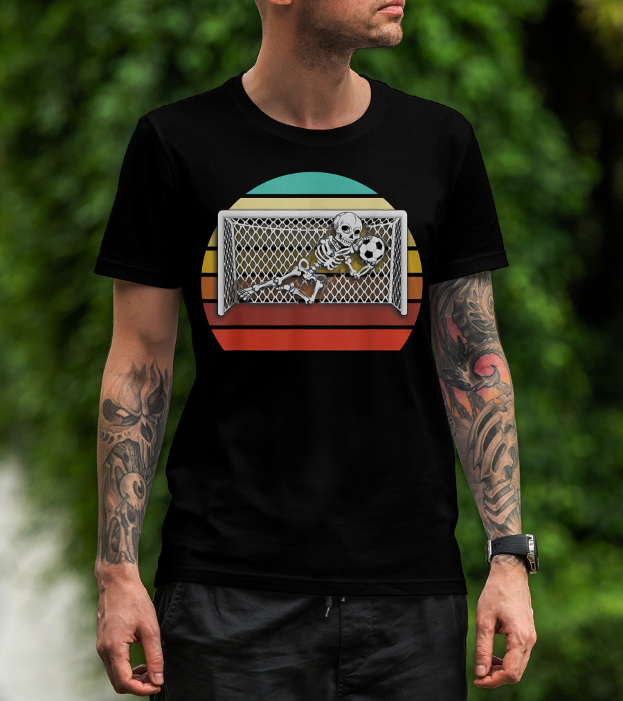 Retro Skeleton Soccer Goalkeeper Halloween Goalie Save 161 T-Shirt
