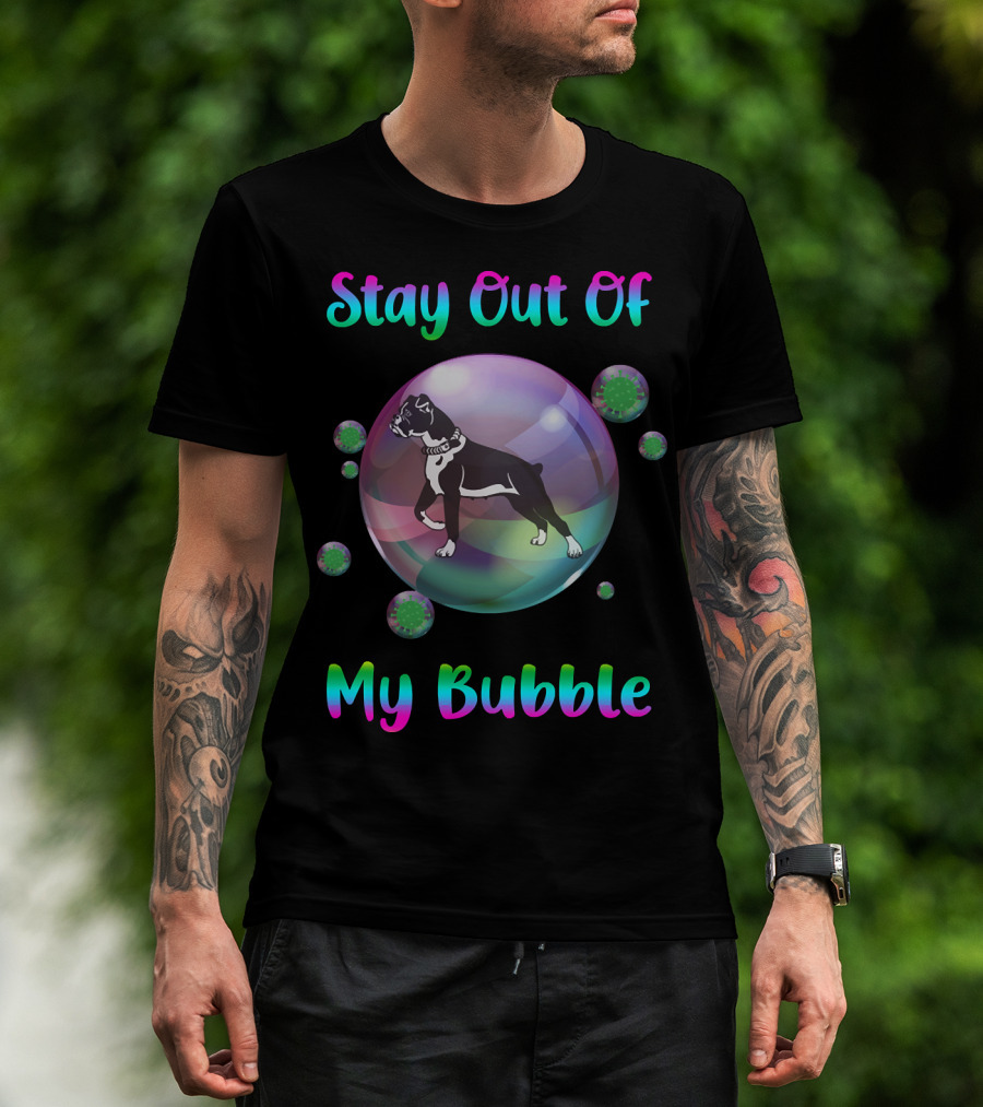 Stay Out Of My Bubble Boxer Dog Inside Colorful Bubble Surrounded By Virus-Like Symbols T-Shirt