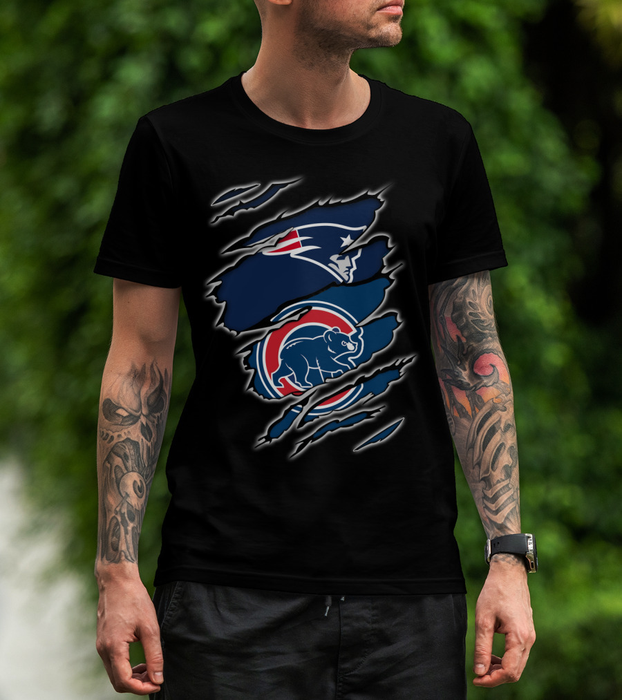 Patriots And Cubs Logos Combined In Claw Mark T-Shirt