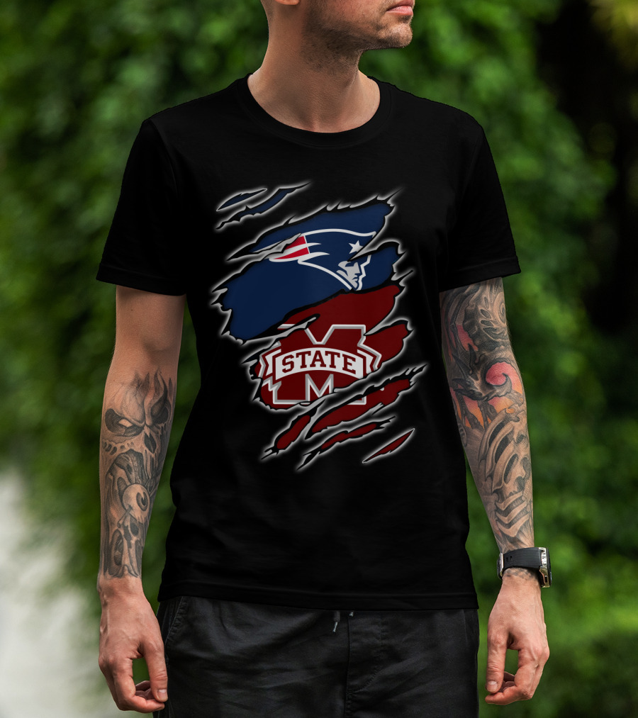 Patriots Face And MS State Logo Claw Rips T-Shirt