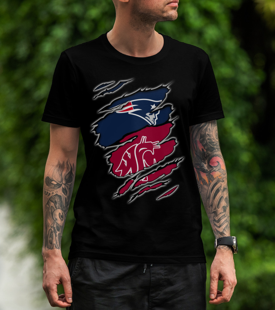 Patriots New England And Washington State Cougars Logos Torn T-Shirt