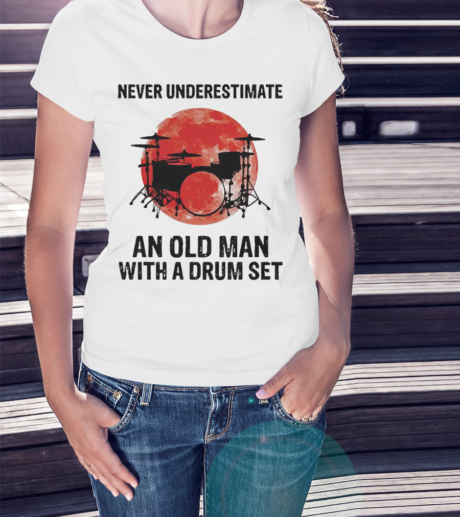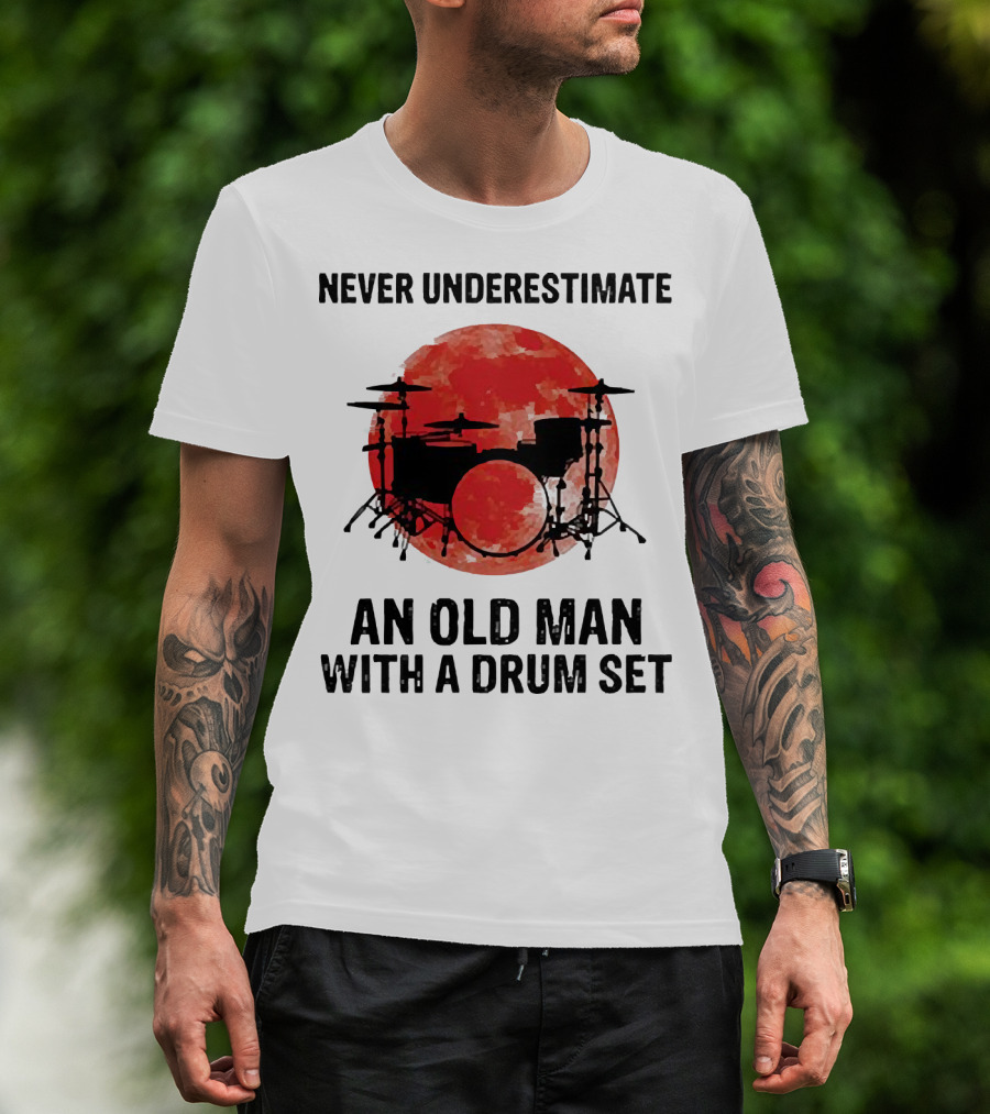 Never Underestimate An Old Man With A Drum Set Sunset T-Shirt