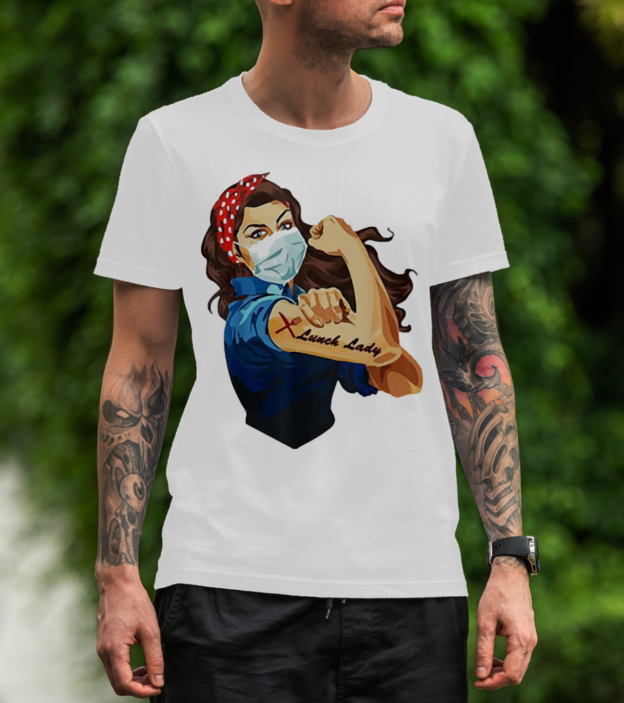Strong Woman Masked Tattoo Lunch Lady Empowerment T-Shirt