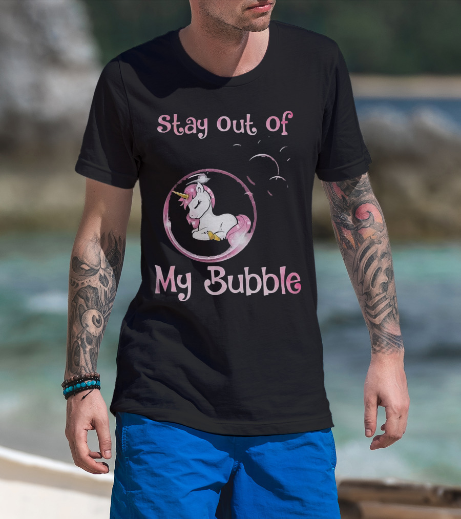 Stay Out Of My Bubble Unicorn In Bubble With Pink Mane T-Shirt
