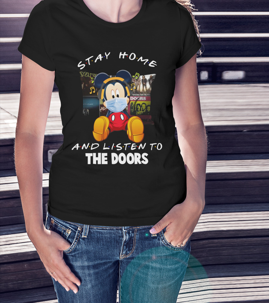Stay Home And Listen To The Doors Mickey Masked Headphones T-Shirt