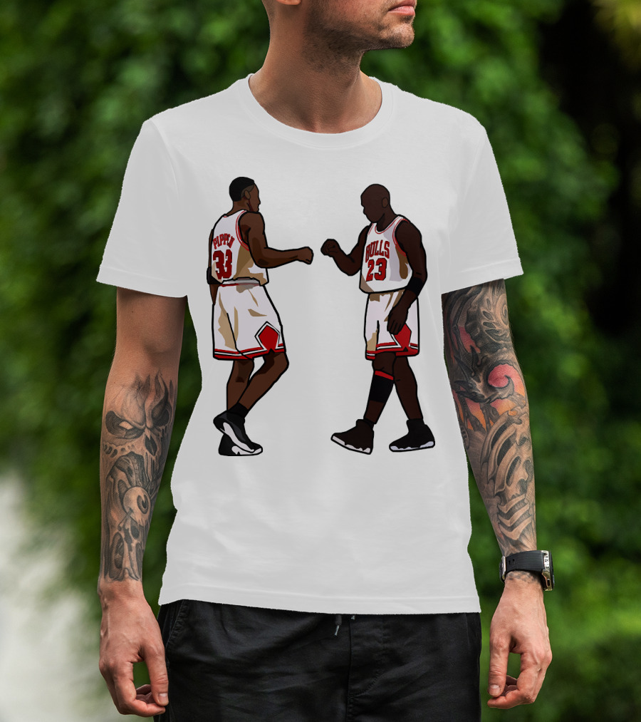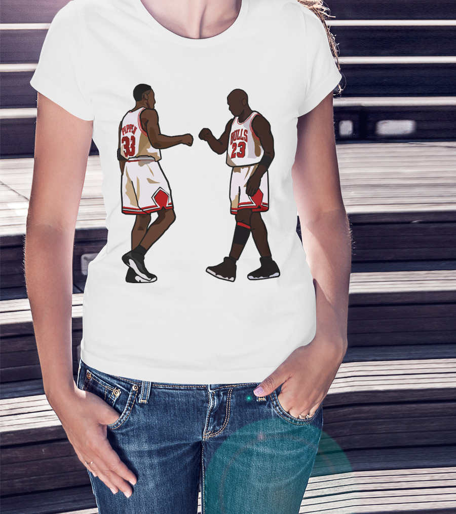 Michael Jordan Scottie Pippen 23 33 Chicago Bulls NBA Throwback T-Shirt