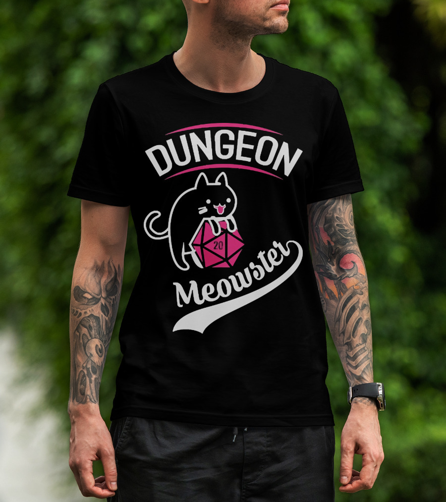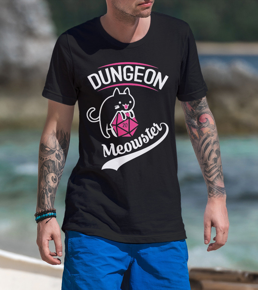 Dungeon Meowster Cat Holding D20 Dice T-Shirt