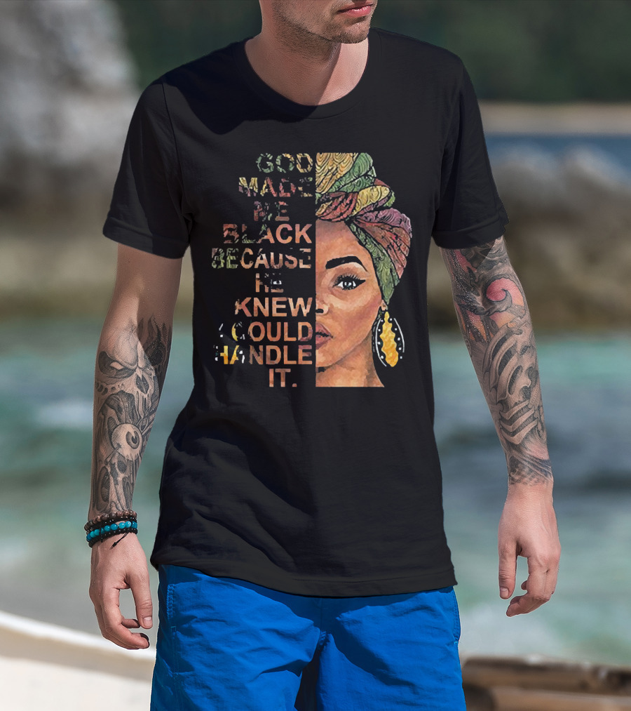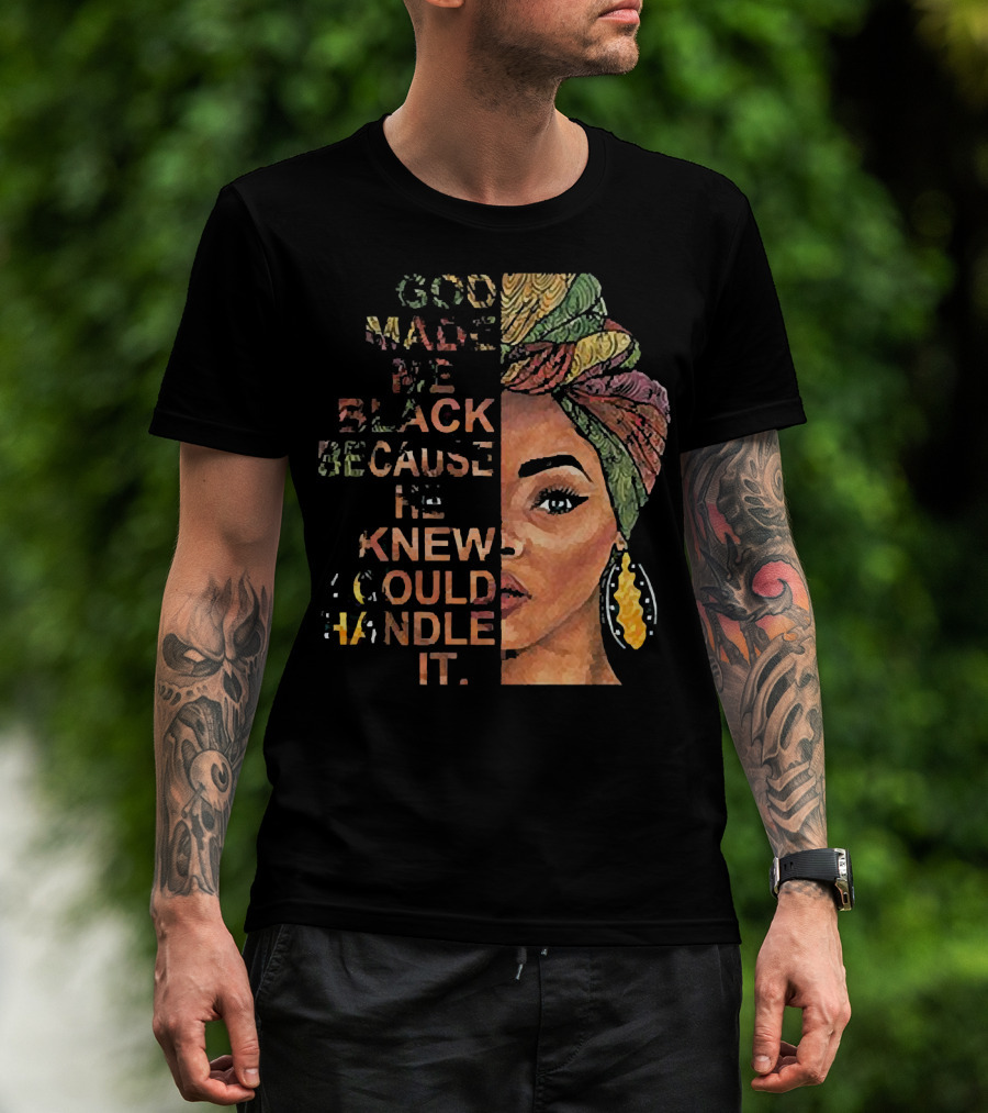 God Made Me Black Because He Knew I Could Handle It Woman Face In Colorful Headwrap T-Shirt