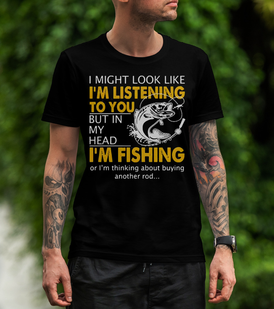 I Might Look Like I'm Listening To You But In My Head I'm Fishing Or Thinking About Buying Another Rod T-Shirt