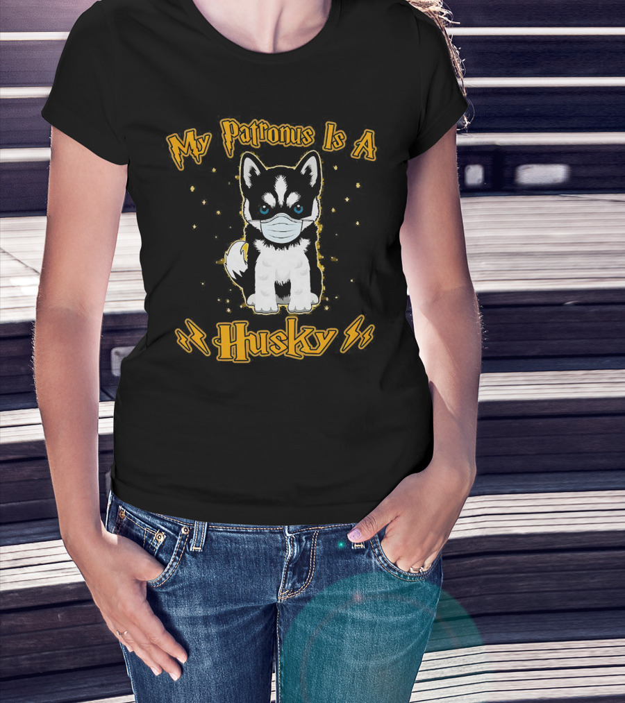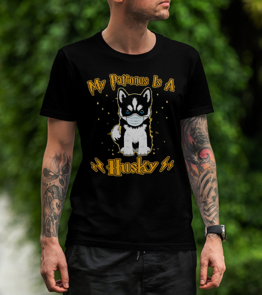 My Patronus Is A Husky Puppy Wearing Face Mask With Stars And Lightning T-Shirt