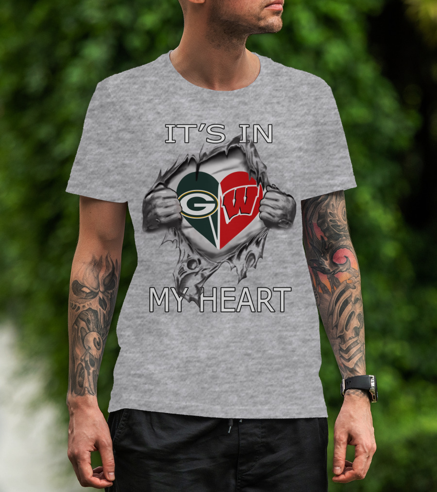 Packers Badgers It's In My Heart Green Bay Wisconsin Football T-Shirt