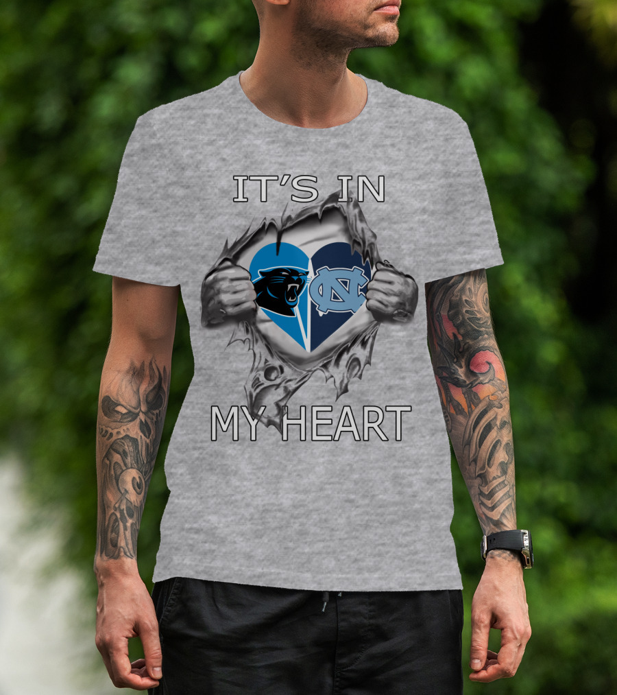 The Panthers Tar Heels It's In My Heart T-shirt is designed for everyday wear and a consistent fit. Fabric is pre-shrunk ring-spun cotton with durable stitching. See the size chart below for exact measurements.