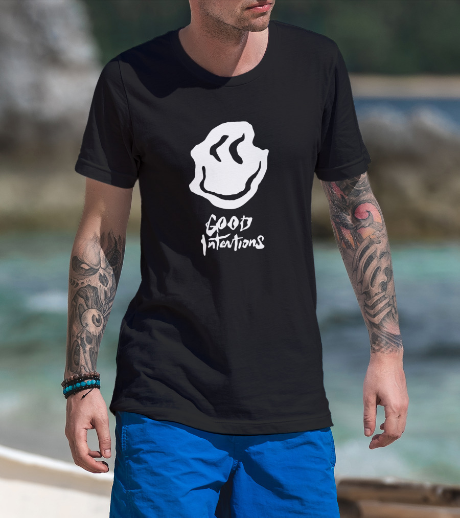 The Good Intentions Nav Merch T-shirt is designed for everyday wear and a consistent fit. Fabric is pre-shrunk ring-spun cotton with durable stitching. See the size chart below for exact measurements.