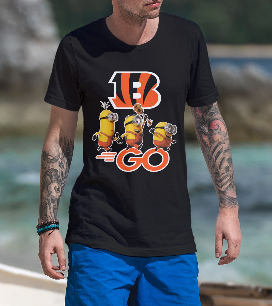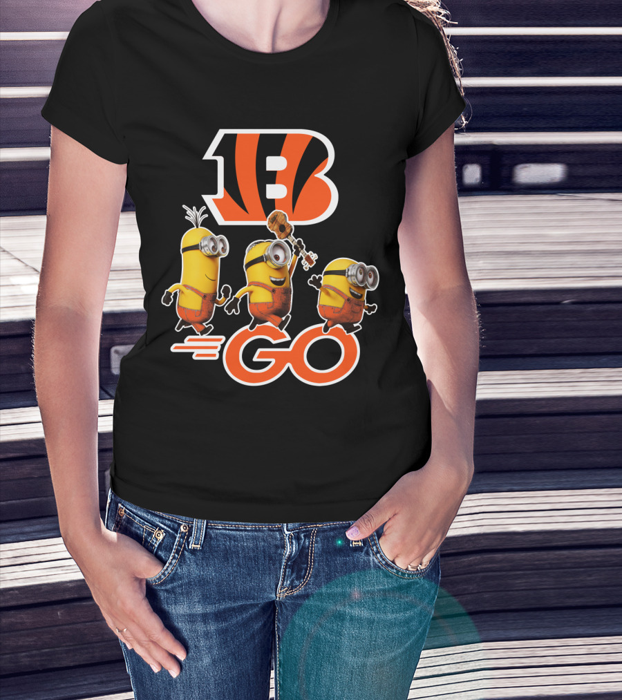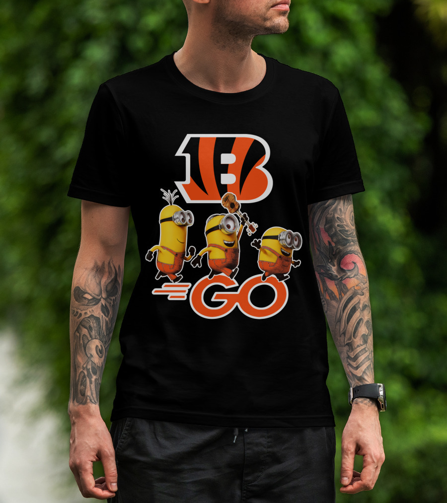 The Bengals Minions Go T-shirt is designed for everyday wear and a consistent fit. Fabric is pre-shrunk ring-spun cotton with durable stitching. See the size chart below for exact measurements.
